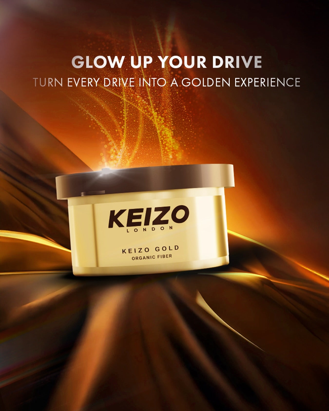 Use only as directed. Avoid contact with surfaces, including plastics and dashboards, to prevent damage. For external use only. Turn every ride into an extraordinary golden journey with KEIZO Gold—where luxury meets fragrance.